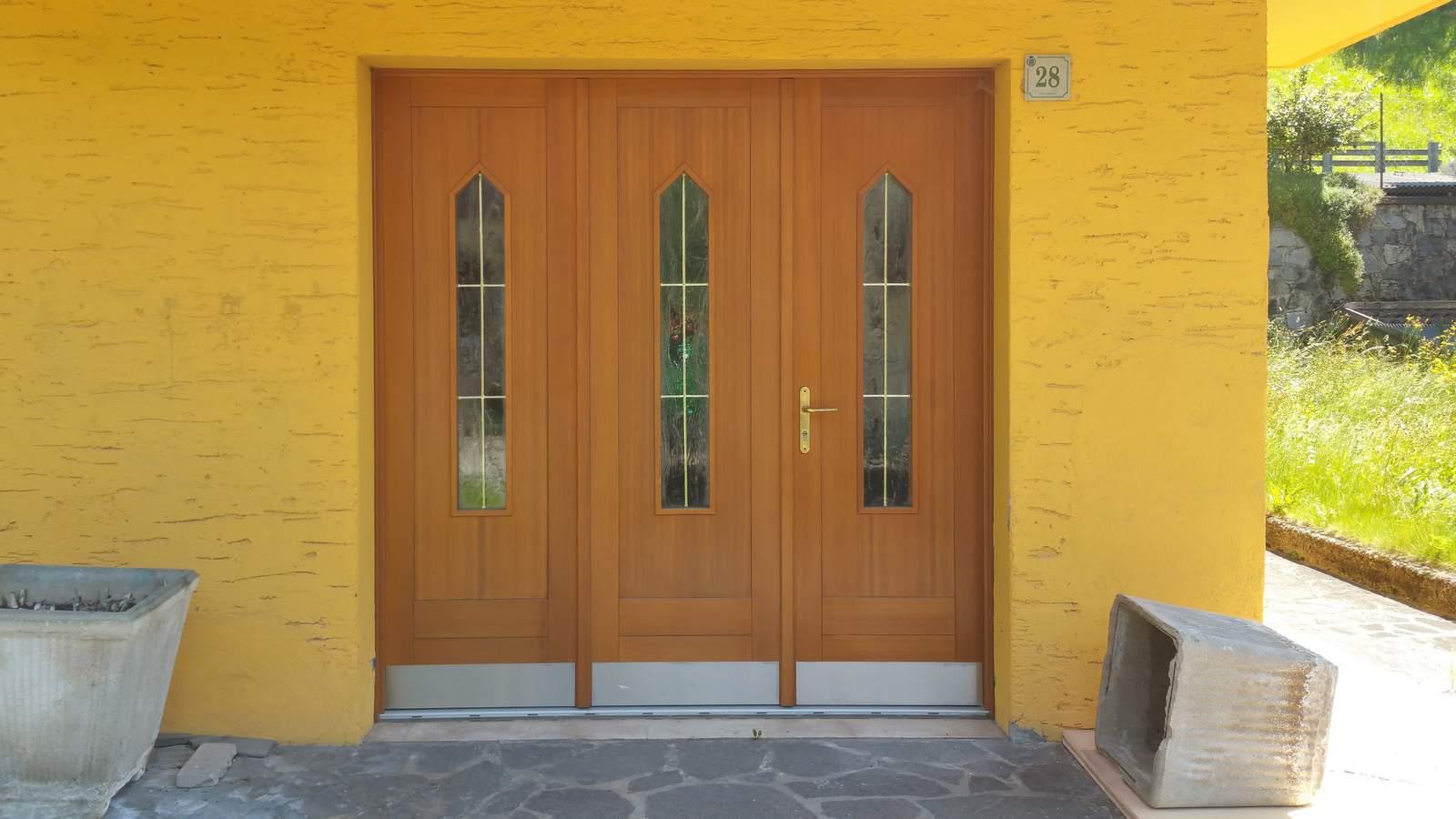 I portoncini d'entrata hanno le stesse caratteristiche tecniche e termiche delle finestre, pertanto vengono costruiti in conformità delle Norme UNI 7979 e nel rispetto delle Norme DIN 68121, con sezione del telaio 92x85 e battente 92x135 mm. I materiali normalmente utilizzati sono: Abete lamellare, Larice lamellare, Rovere lamellare, Pitch-Pine, Noce Tanganica, Kotò.
